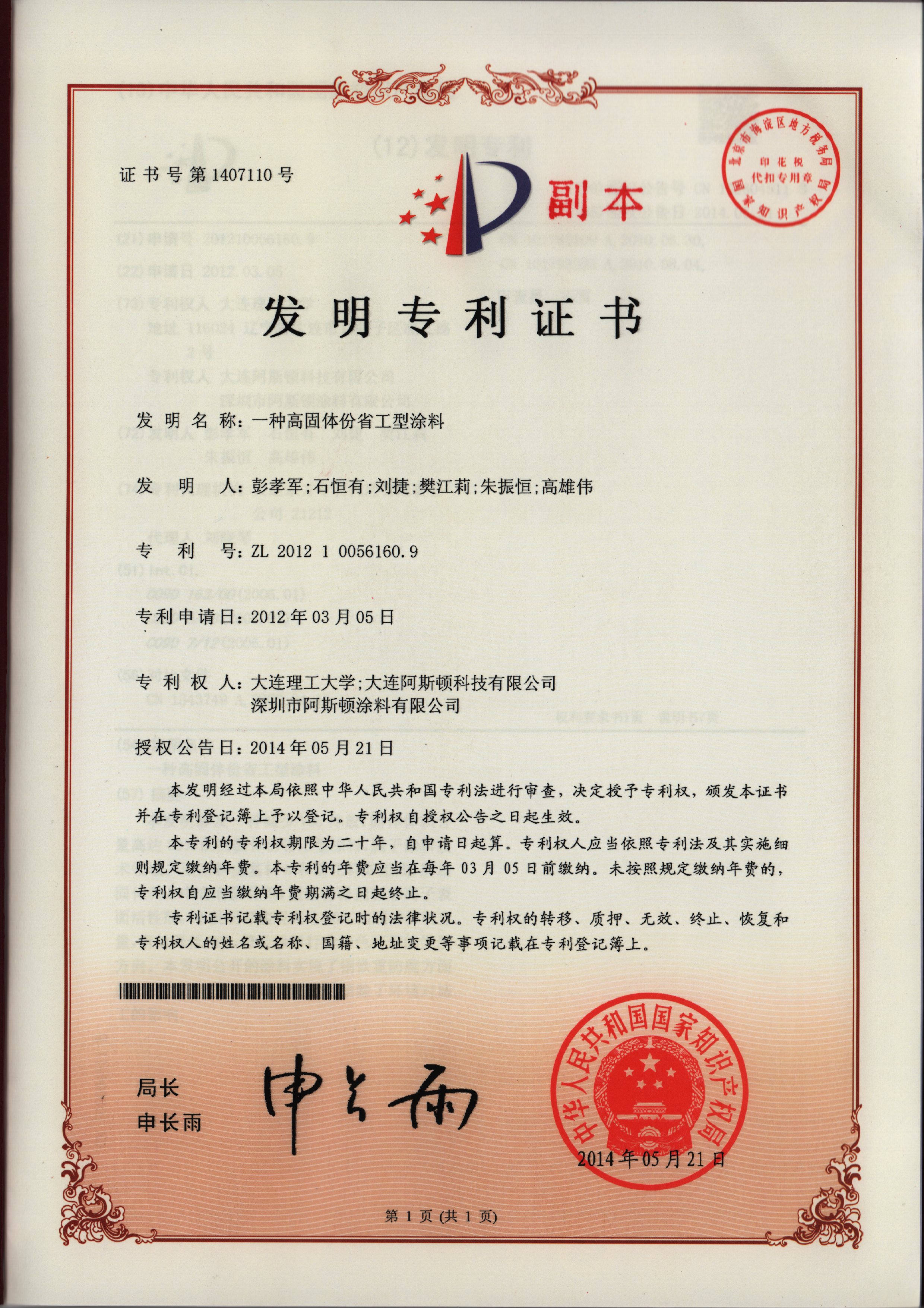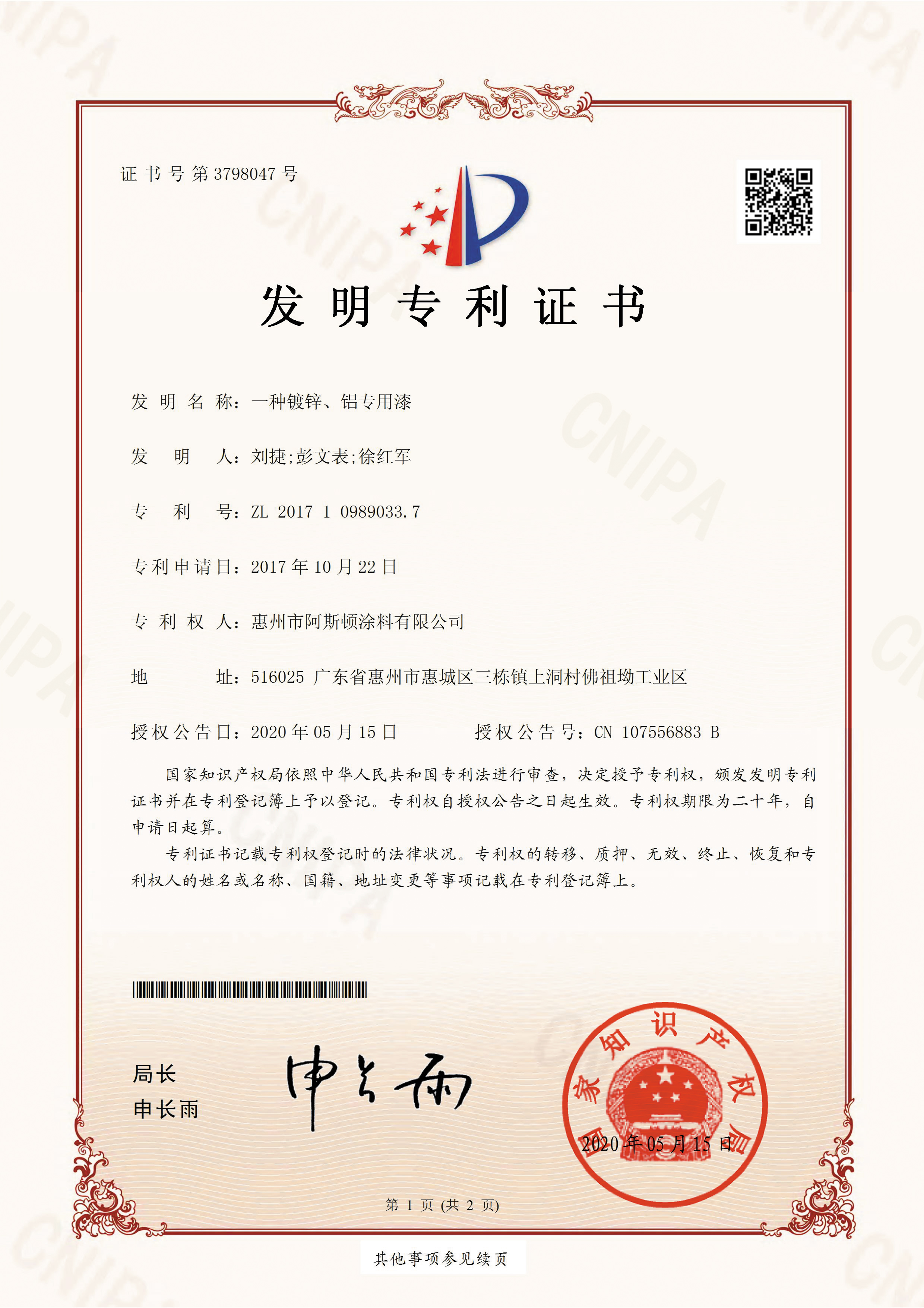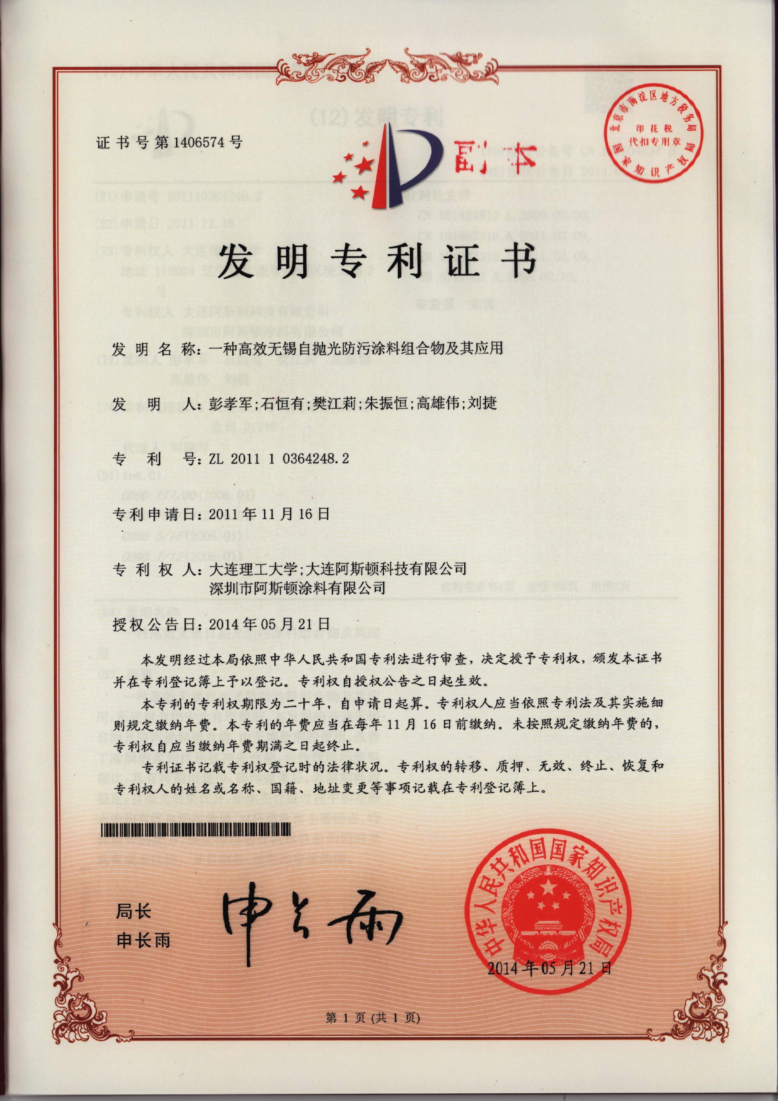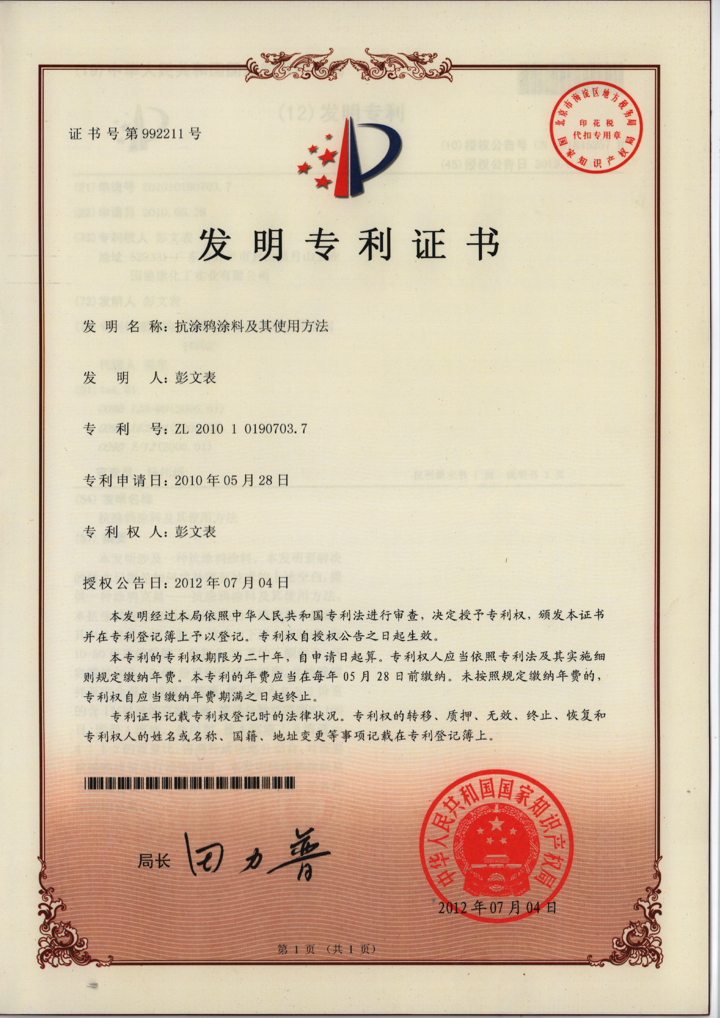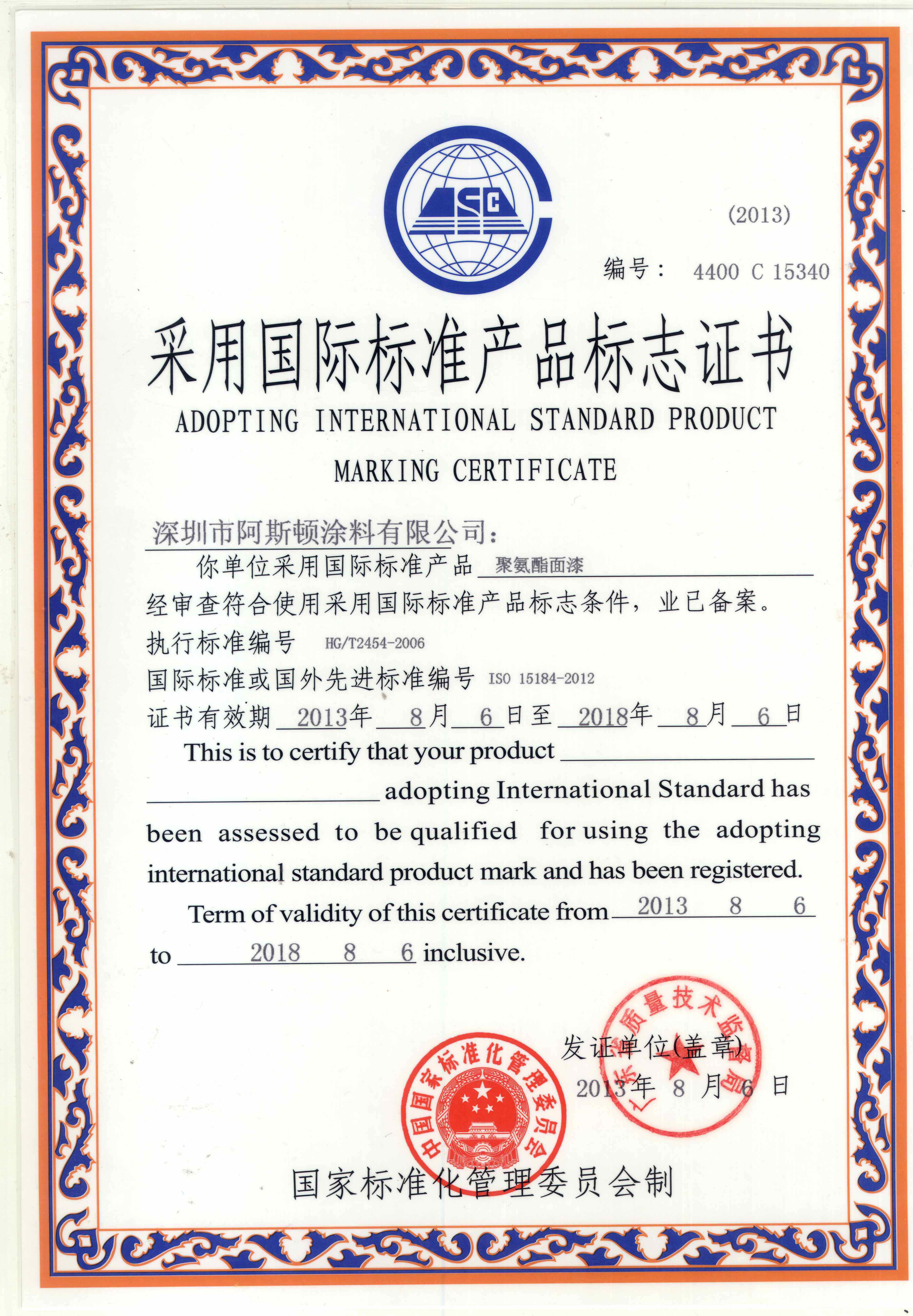 國際標(biāo)準(zhǔn)證書/專利證書